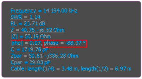 Zaprezentowane powyżej wartości oznaczają iż możliwe jest uzyskanie zamierzonego efektu to znaczy niski SWR wraz z przesunięciem fazy równym 90 stopni oraz dopasowanie impedancyjne przy tej samej częstotliwości.